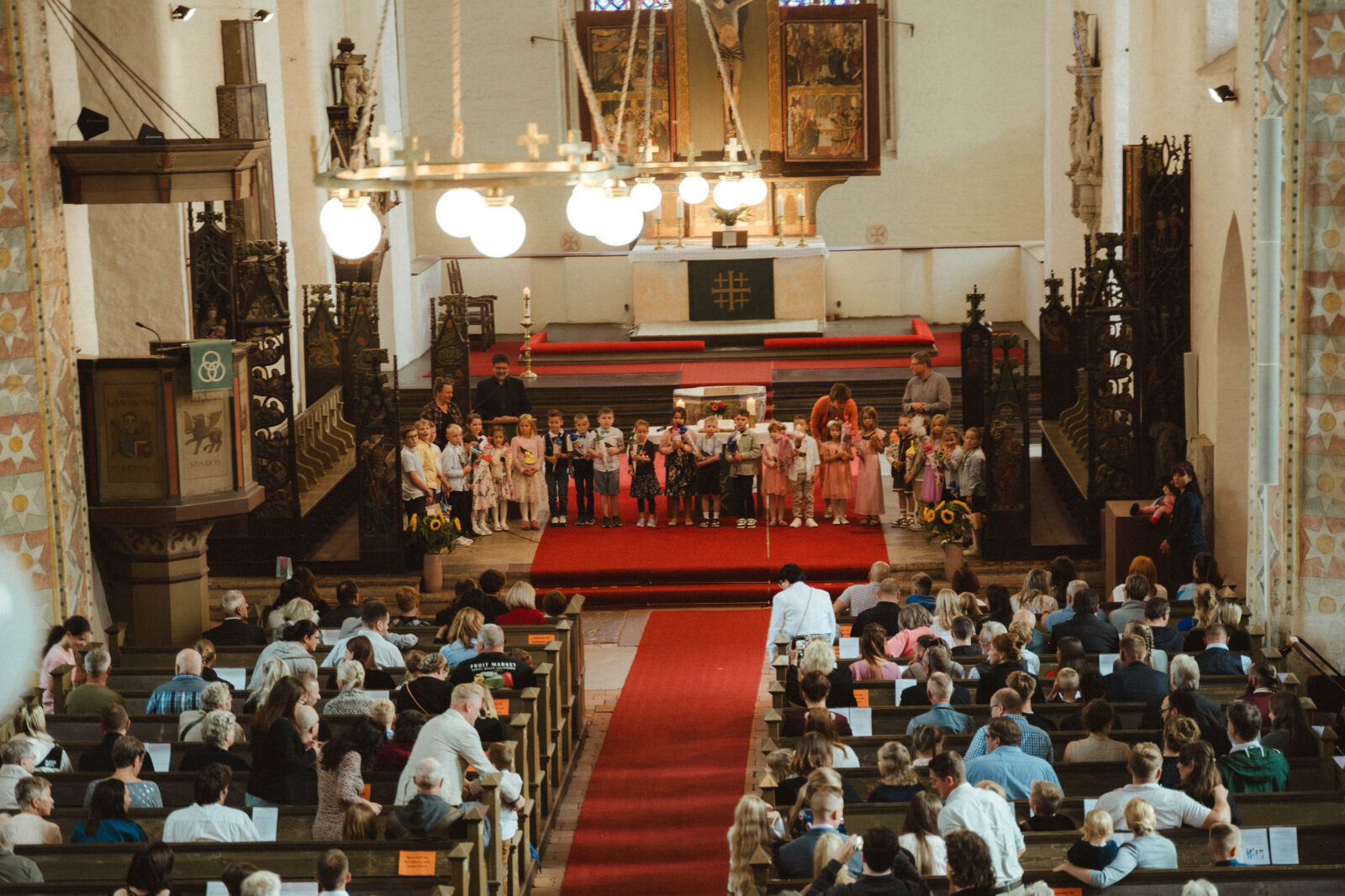 Am Samstag, den 06. September 2025, durften wir 22 aufgeregte und erwartungsvolle neue Erstklässler in unserer Schule willkommen heißen. Die Einschulungsfeier begann mit einem feierlichen Gottesdienst in der Marienkirche, der stimmungsvoll auf den neuen Lebensabschnitt einstimmte.